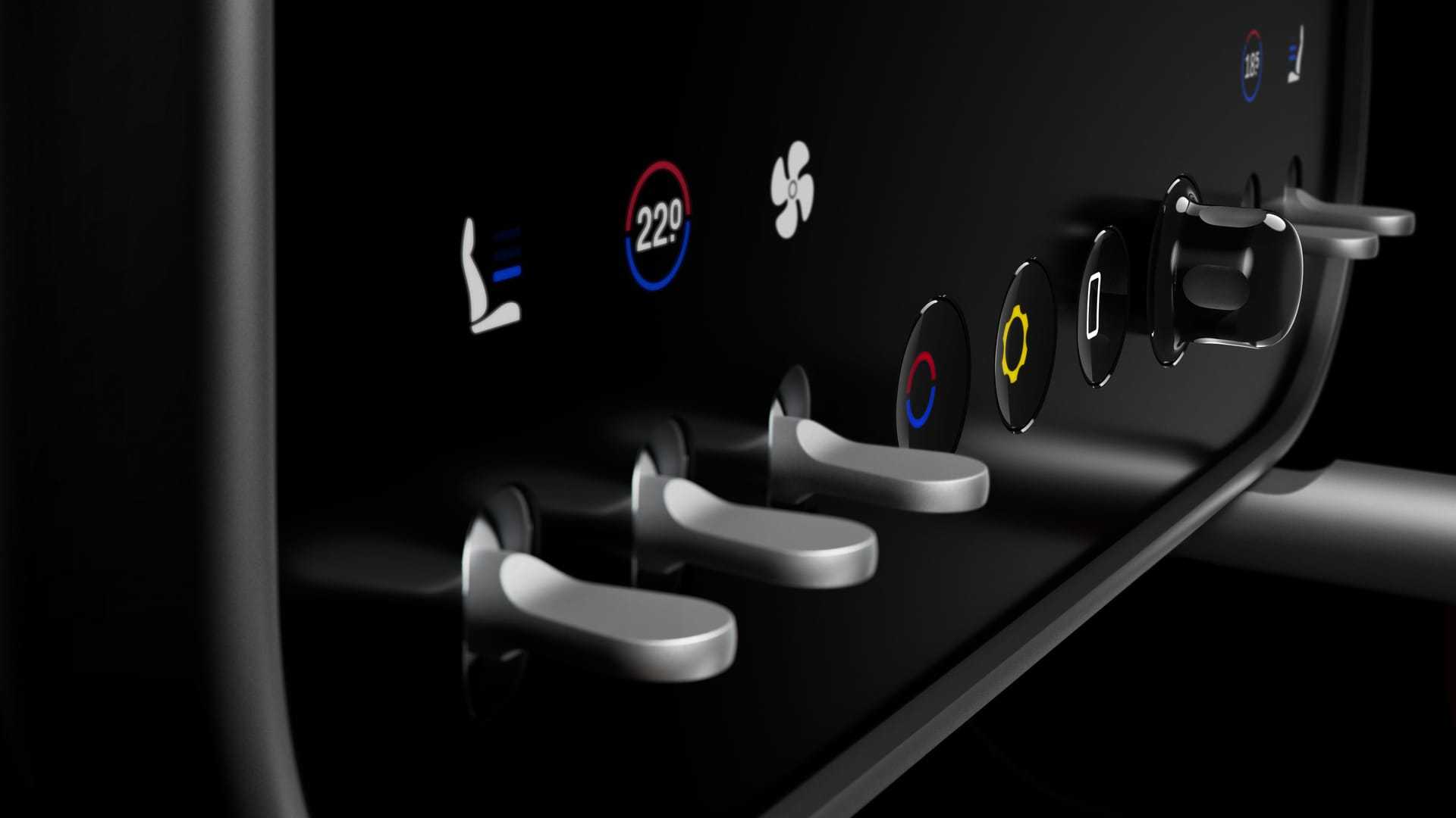 车内共配备三块屏幕,分别位于仪表盘、中控及后排,所有显示字体均为定制开发。仪表盘采用双层重叠OLED面板,由三星参与研发,可呈现高对比度与鲜艳色彩。中控屏幕支持球形转轴调节,可自由转向驾驶员或副驾驶,并配备掌托以减少操作时的低头动作。屏幕右侧集成多功能球形表,可切换时钟、计时器、指南针及弹射起步指南;顶部左侧屏幕显示时速、功率等参数,中部大屏则负责CarPlay、空调调节及车辆设置等功能。